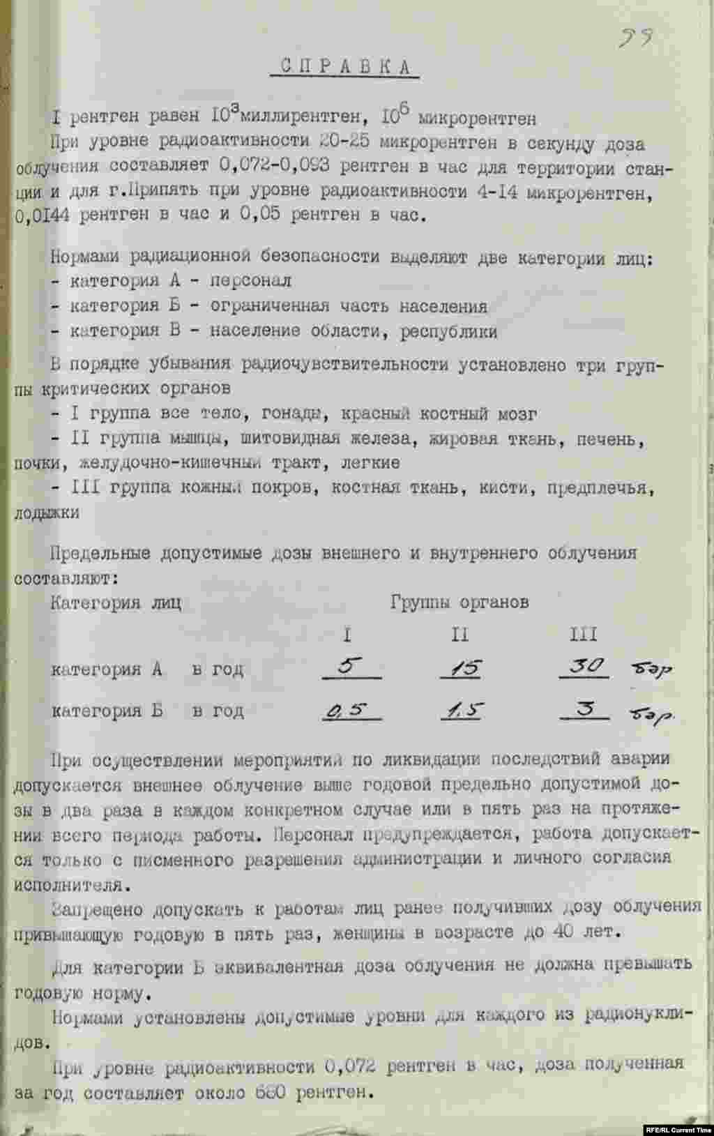 26 апреля 1984 года, в день аварии на ЧАЭС, появилась первая справка о допустимом уроне облучения для разных категорий населения и персонала